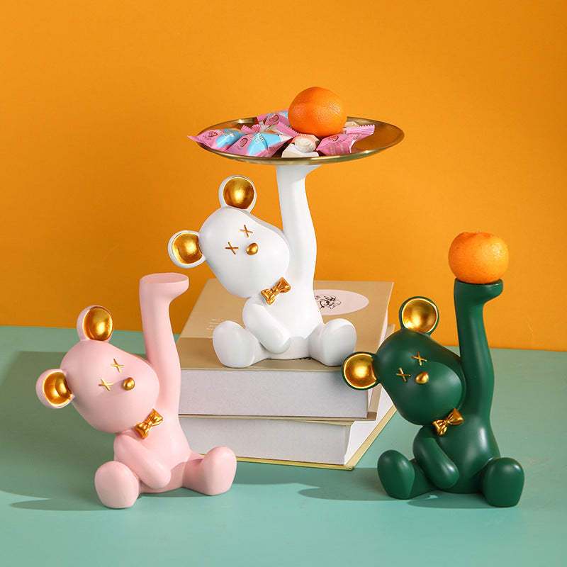 Nordic Bear Resin Tabletop Decoration is a delightful blend of whimsy and practicality. This charming bear gracefully holds the tray, serving as a captivating accent piece while offering convenient storage for your small items. Perfect for contemporary living rooms, playful nurseries, or serene reading nooks, its vibrant and bright palette easily injects fun and charm into any space.
